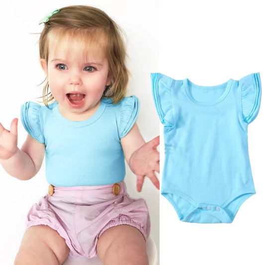 Wholesale Newborn Baby Girls Clothes Solid Color Fly Sleeve Romper Cotton Boys Clothes Summer Infant Clothing Baby Jumpsuit