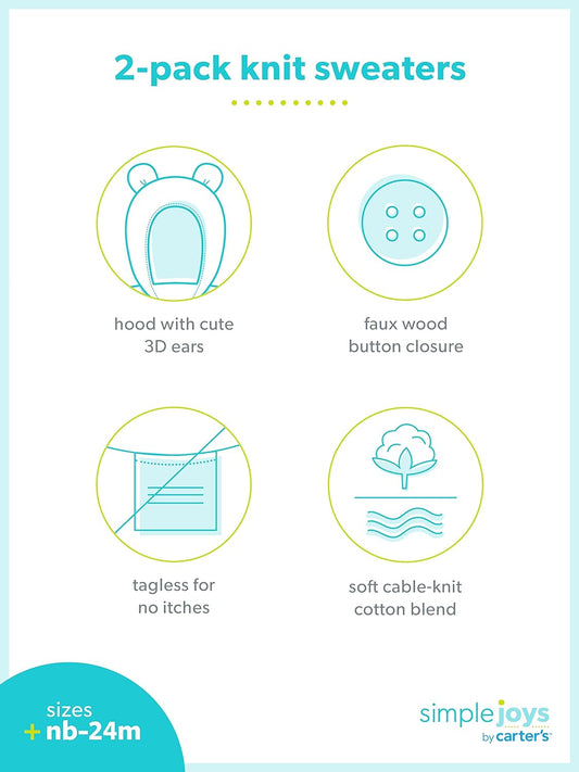 Unisex Babies' Knit Cardigan Sweaters, Pack of 2